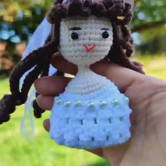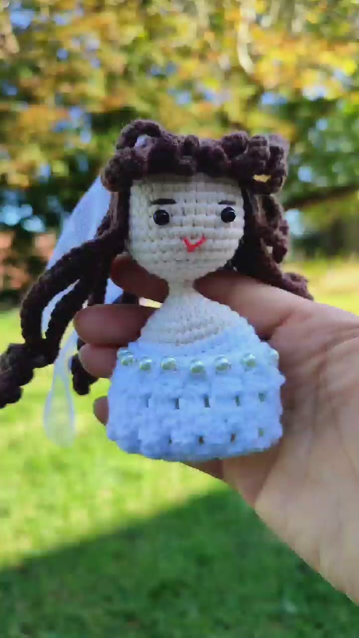 Cette charmante poupée en crochet fait main, représentant une belle mariée en robe blanche, est le souvenir ou le cadeau parfait pour les mariages, cadeaux de douche nuptiale ou toute occasion spéciale. Avec des détails minutieux et un fil doux, cette poupée est non seulement adorable, mais aussi une jolie pièce de décoration. Chaque poupée est soigneusement confectionnée, assurant une touche unique et personnalisée à chaque pièce.